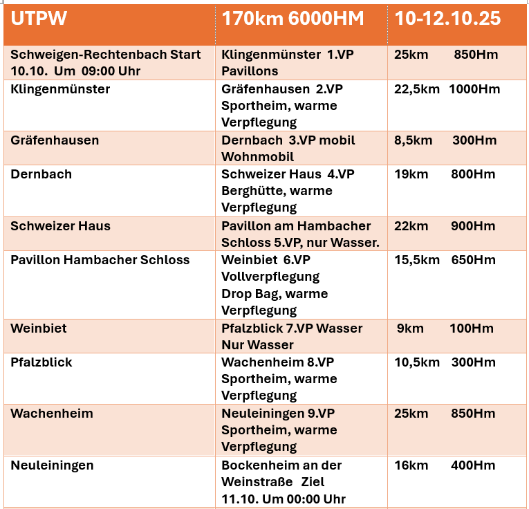 Der Start erfolgt am 11.10.25 in Neustadt an der Weinstrasse, an der Jugendherberge.