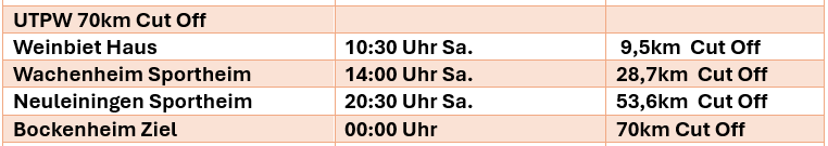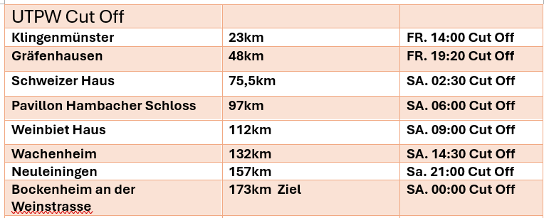 Verpflegungspunkte | Cut-Off Zeiten 170km